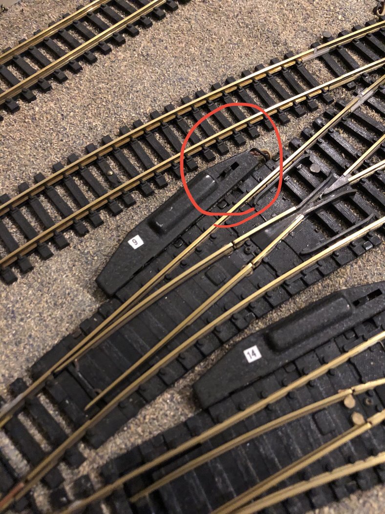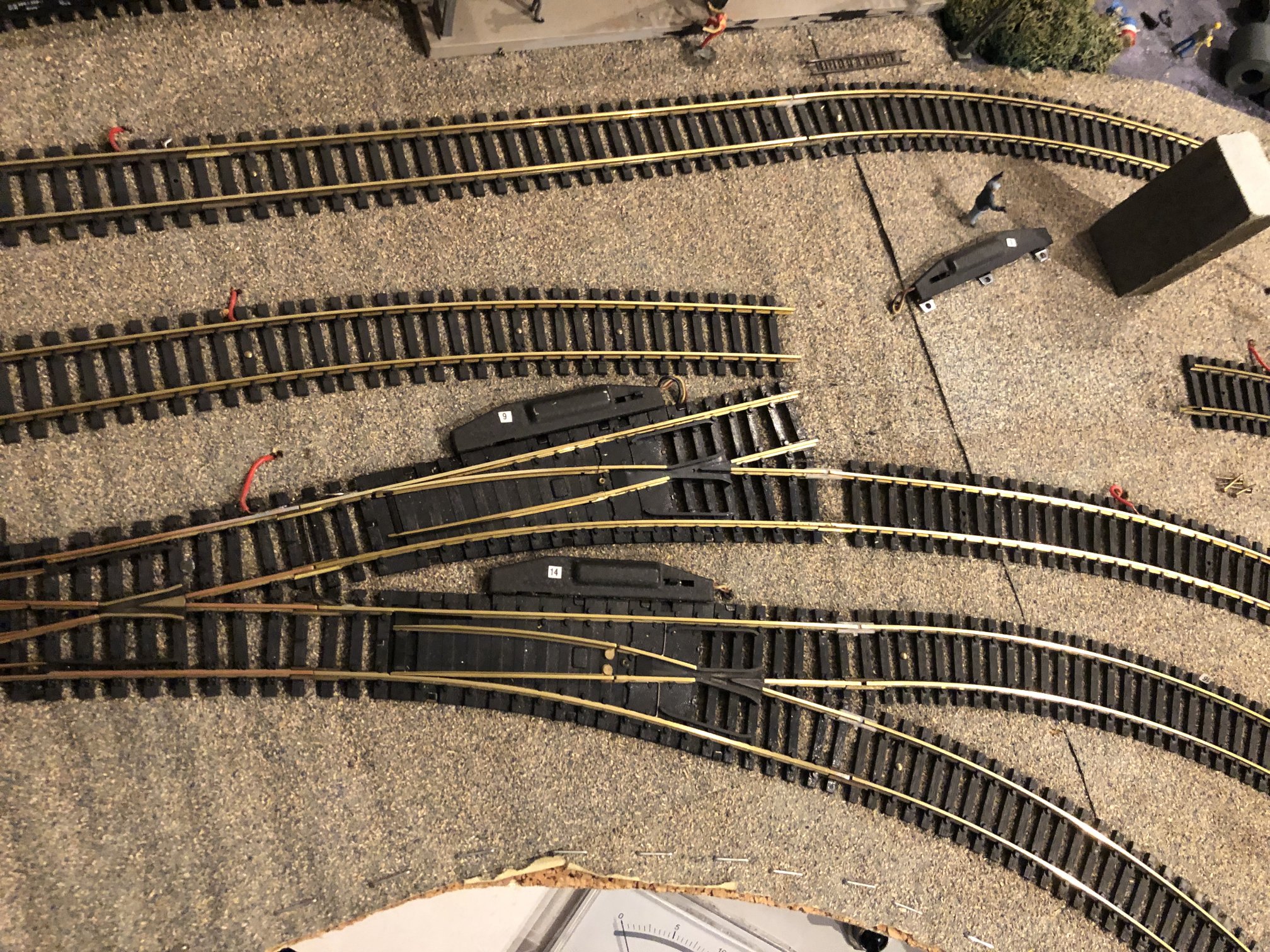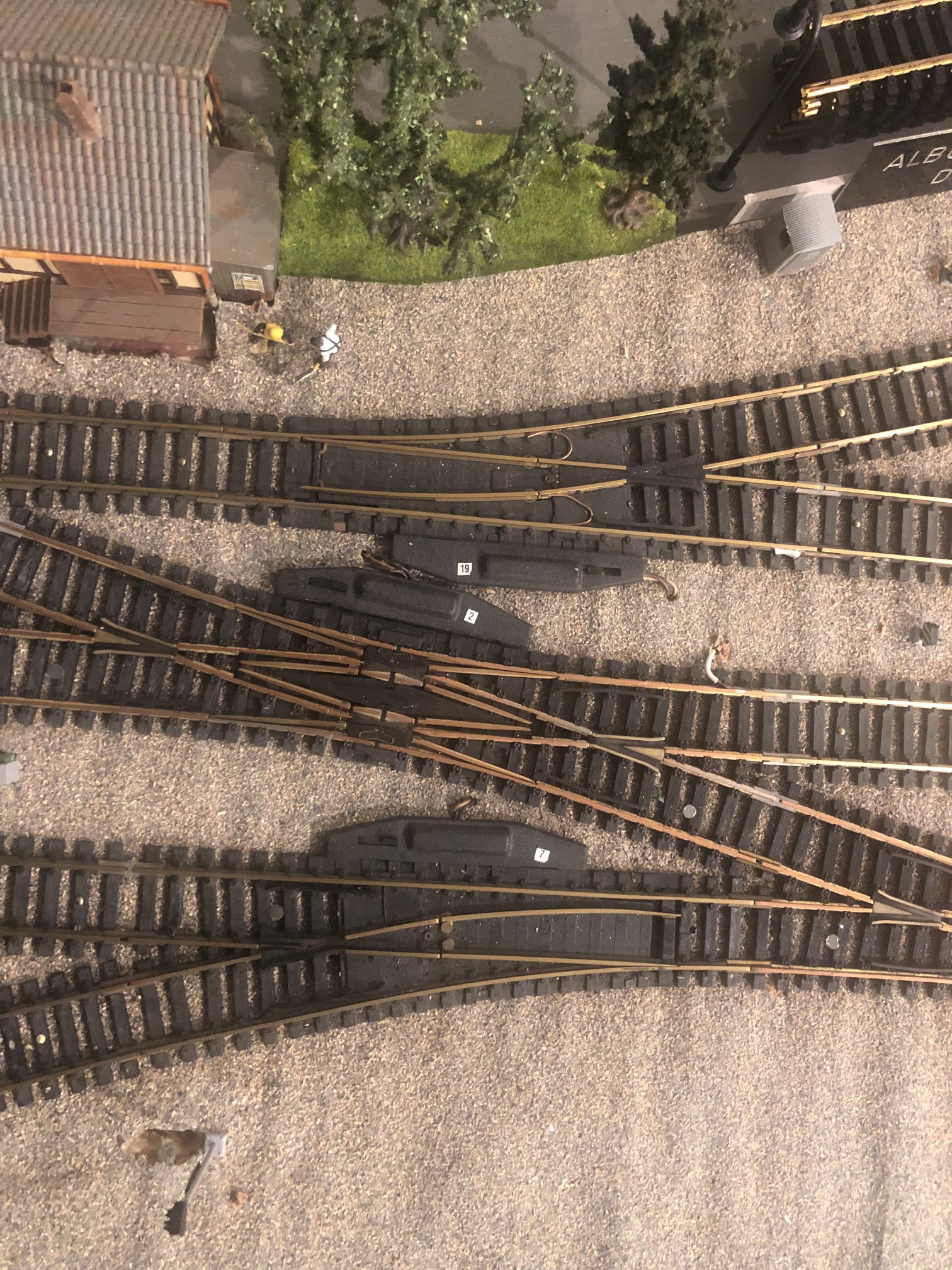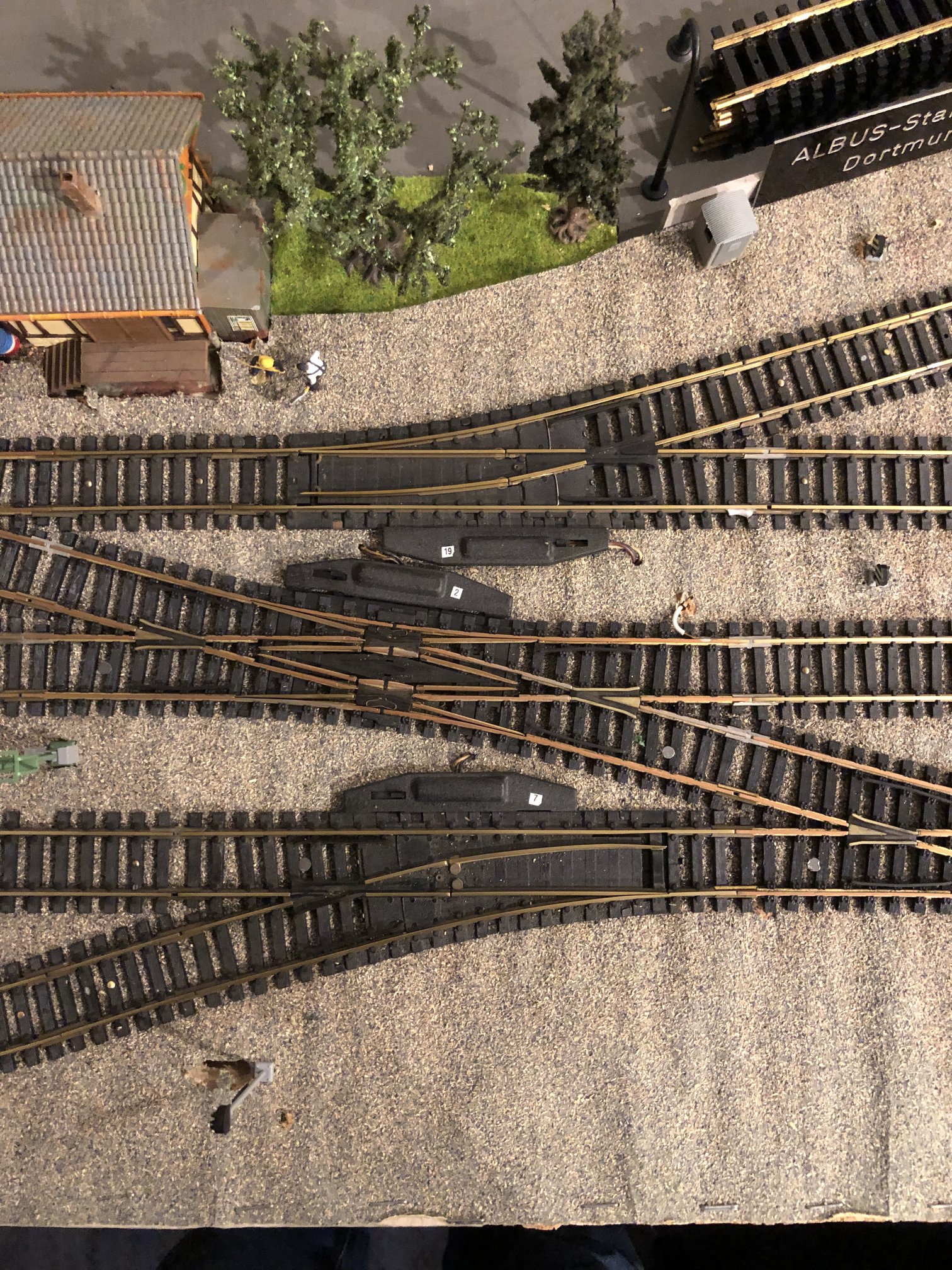 Fleischmann-Weichen durch originale Klammern ersetzt. Die kupfernen manuell
