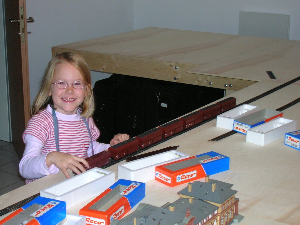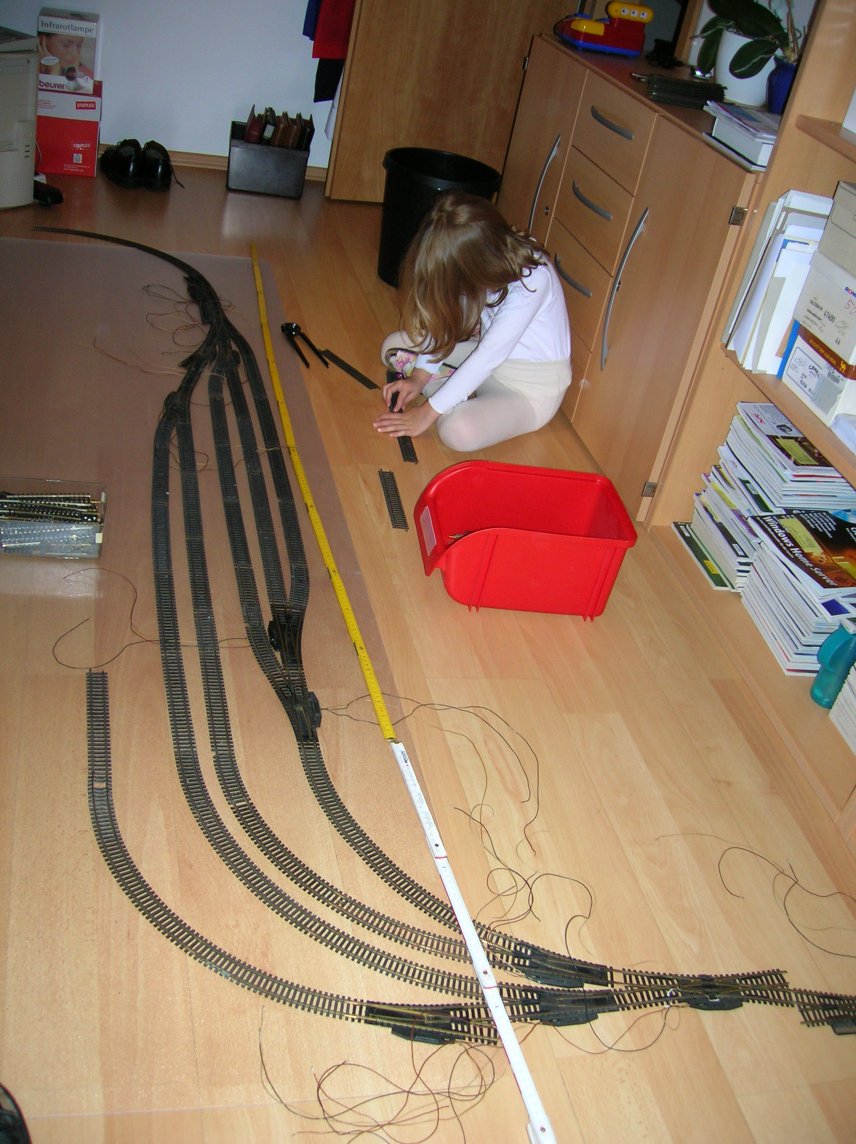 Der neue Bahnhof entwickelt sich. Auch meine Tochter hat Spaß daran gefunden, Gleise zusammenzustecken. Der Gleisplan zeigt schon die Variante,