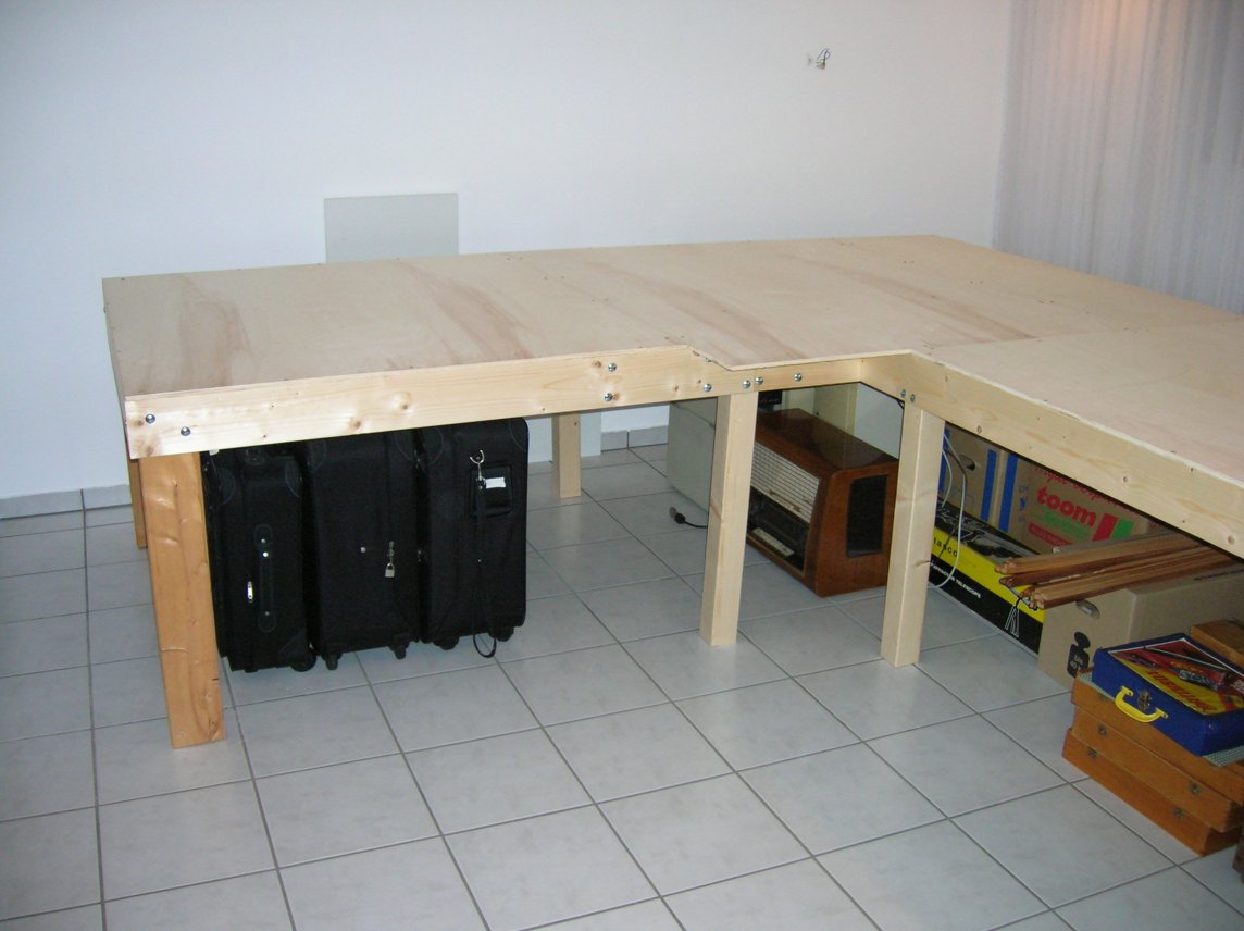 hatte ich als 1,5m x 1,5m geplant. Leider gibt's Sperrholz nur bis 1,22m. So musste ich ein wenig umdisponieren. Die Sache hatte