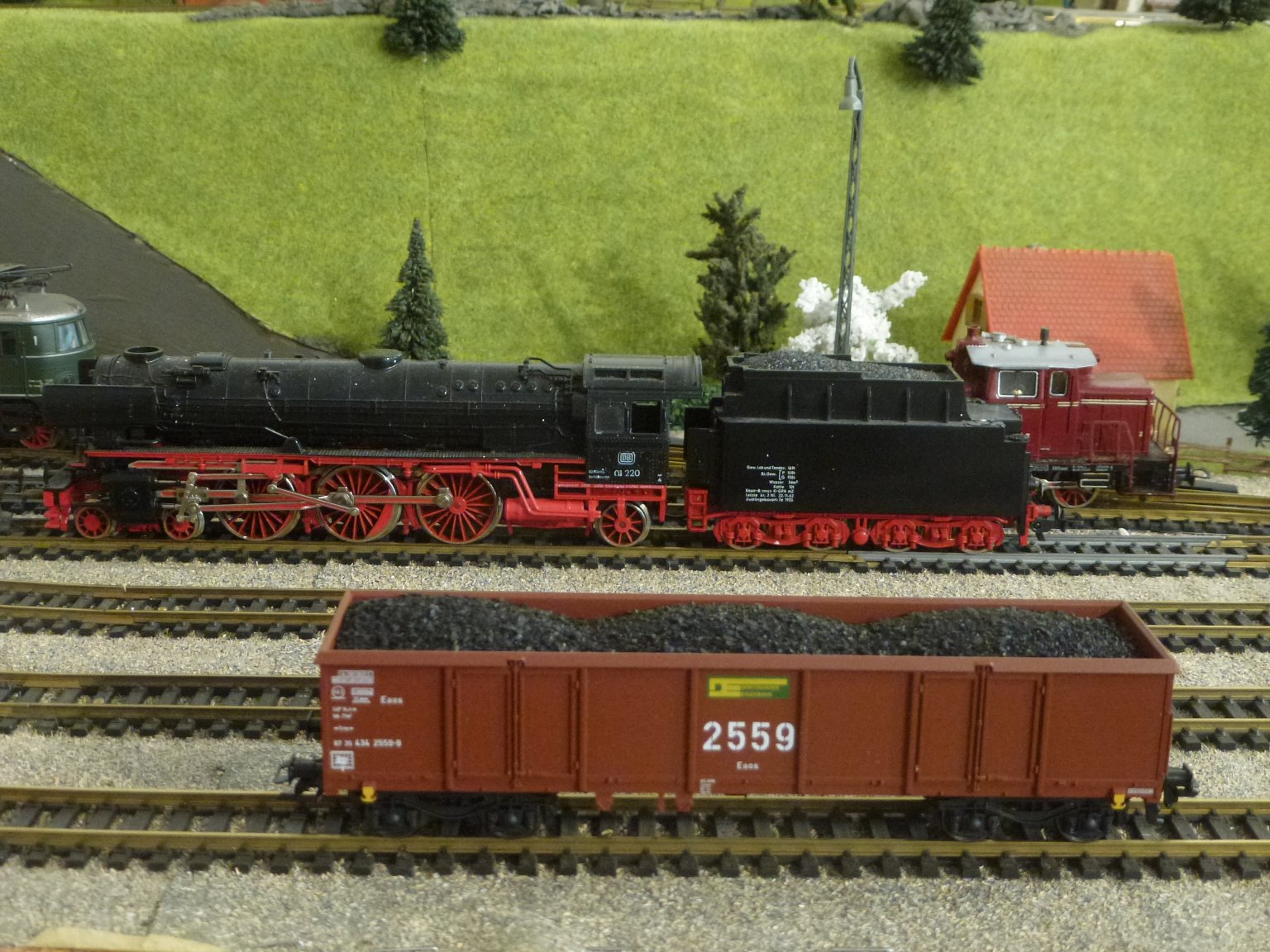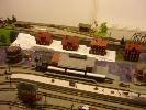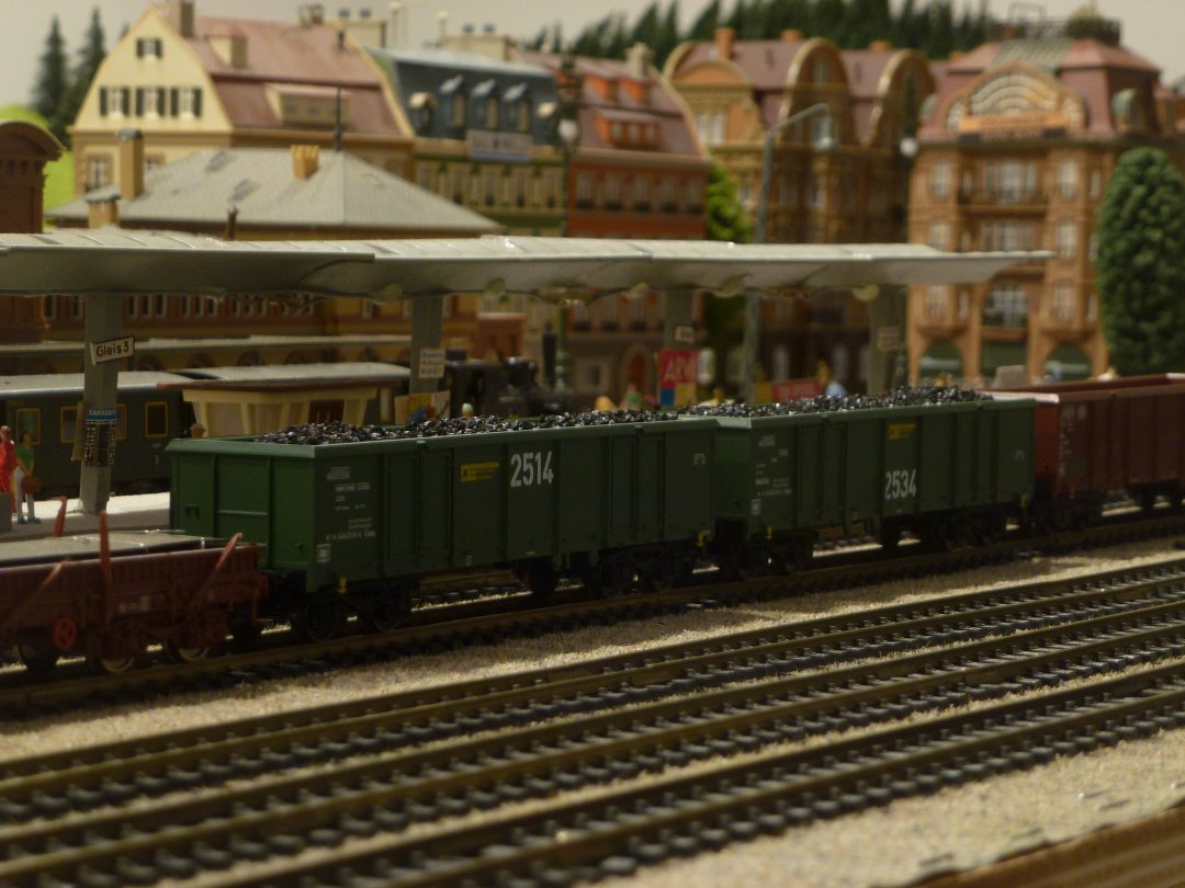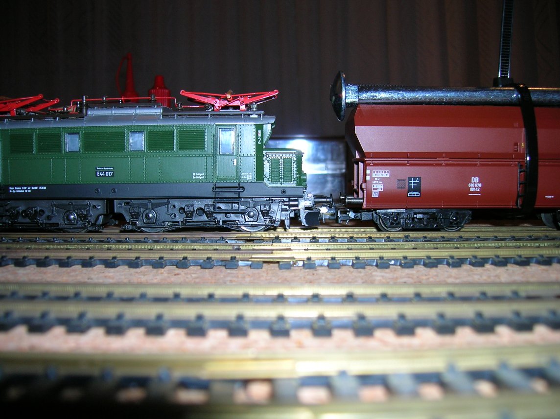 Die Roco-Erzwagen sind zu leicht! In jeder Kurve springen die Waggons raus, weil die schwache Kulissenführung der Kupplungen nicht in die Mittelstellung zurückspringen.
