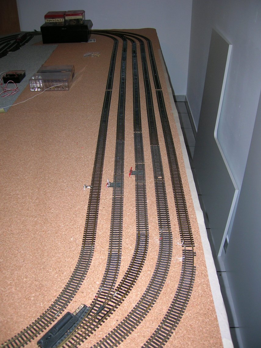 ein paar Gleise aufbauen. Das Bild zeigt die Weichenstraße im Norden. Hier sollen zwei Gleise im Kreis ausfahren und ein