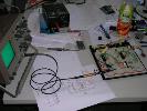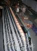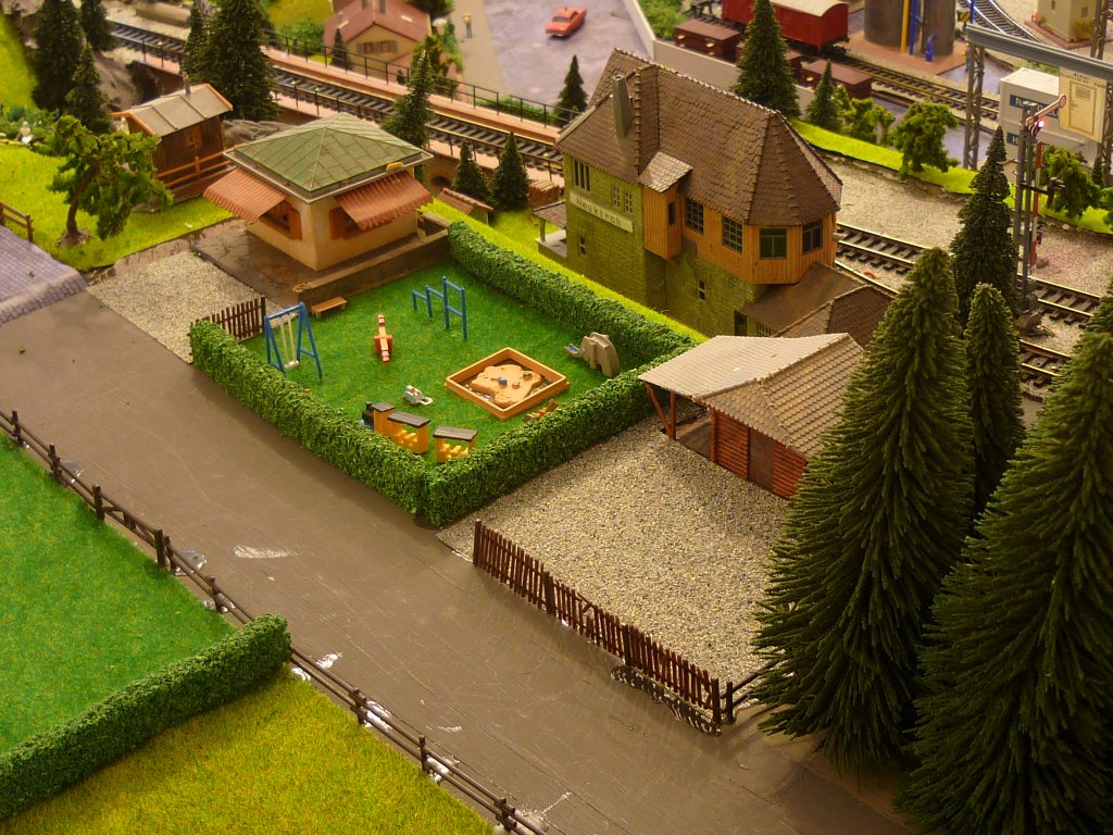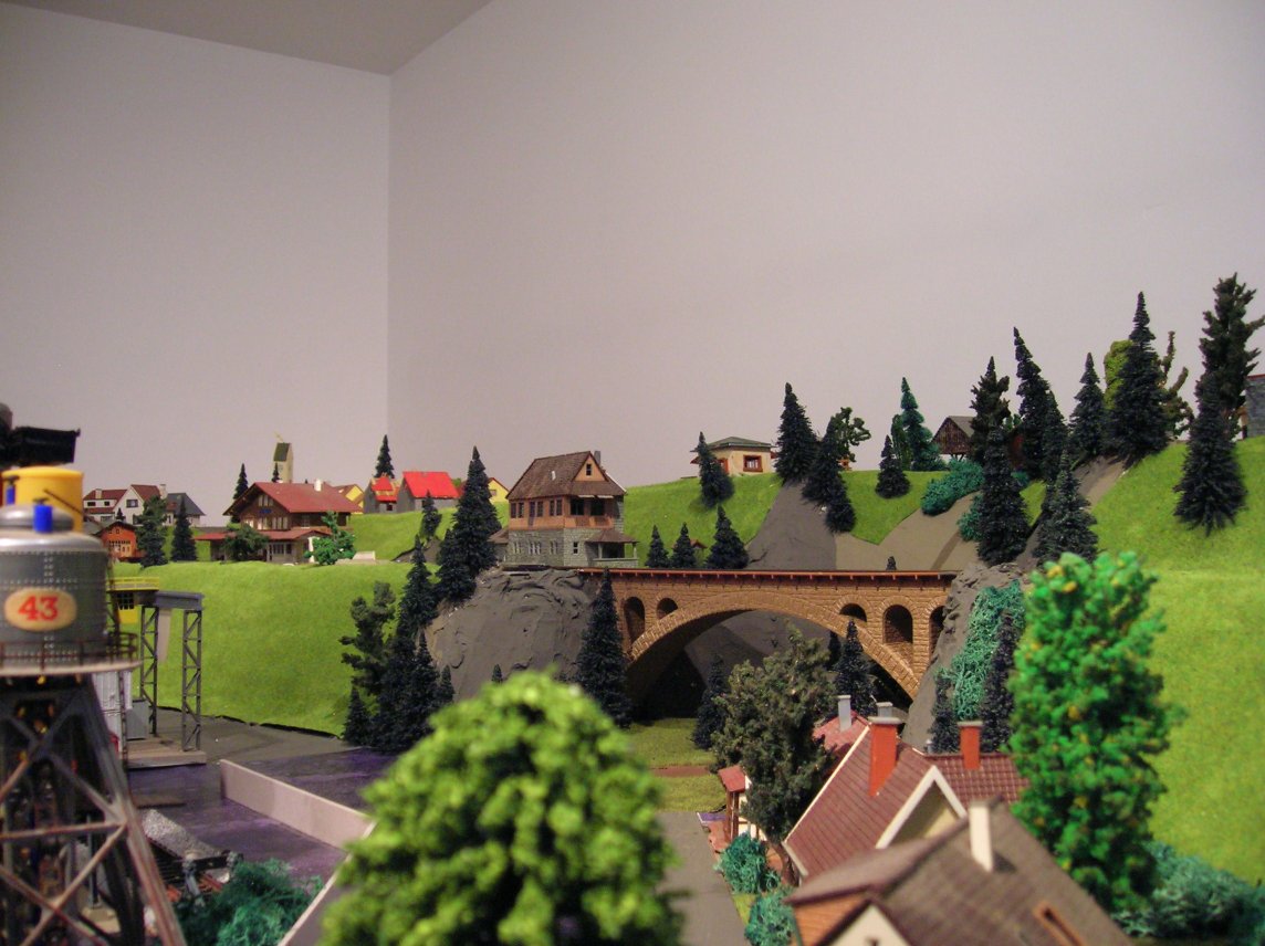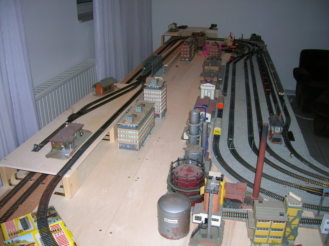 Das Ende der Bergstrecke kann man for den Platten erkennen. Dieser Teil ist nicht abnehmbar - muss er auch nicht, da darunter keine Gleise verlegt sind. Der Gleisplan ist mit Trix-Weichen ausgelegt. Es zeigt sich aber, dass diese doch nicht mehr so gut schalten. Hier wird wohl eine weitere Investition in neue Weichen erfolgen müssen. Das Gegrübel über den Viadukt nimmt seinen Lauf. Mehrere Gänge in den Lokschuppen können keine Lösung herbeidenken. Eine Steinbrücke von Vollmer scheint eine Alternative zu sein, kostet aber über 30 Euro. Muss das sein? Seltsamerweise gibt es kein vernünftiges Angebot an Viadukten. Man sucht bei mehreren Herstellern rum, findet aber nichts. Interessant ist, dass es sich Faller leisten kann, in dieser kaufträchtigen Zeit ihren Webserver über mehrere Wochen lang nicht lauffähig zu haben. Zeitgleich findet sich ein Artikel im Stern, indem der Umsatzrückgang beklagt wird. Die Begründung ist, dass sich viele lieber mit dem Rechner beschäftigen, als mit Modellbahnen. Hier scheint wohl ein Management am Werk zu sein, dass die Zeichen der Zeit noch nicht erkannt hat: Mit Rechner und Internet kann man Geld verdienen! Andere im Modellbahnbereich tun das auch. Viele Innovationen im Modellbahnbereich belegen, dass sich viel tut, womit man auch heute noch gerne spielt: mit Modellbahnen und z.B. DCC. Wären da vielleicht nicht Mikrocontroller- gesteuerte Beleuchtung für Modellhäuser nicht was? Vermutlich sogar frei programmierbar über serielle Schnittstelle? Scheinbar hat auch hier der Bahnvirus um sich gegriffen: "Wieso? Wir haben das doch immer so gemacht!"