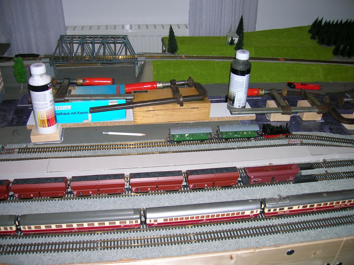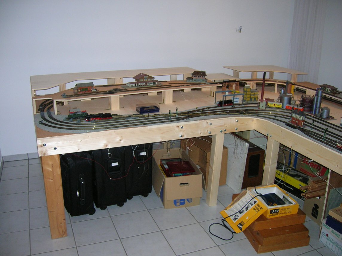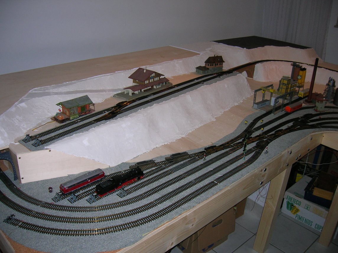 Ausfahrt unterschiedlicher Züge anbelangt. Die weiteren Gleisverlegungs- und verdrahtungsarbeiten ziehen sich über Weihnachten.