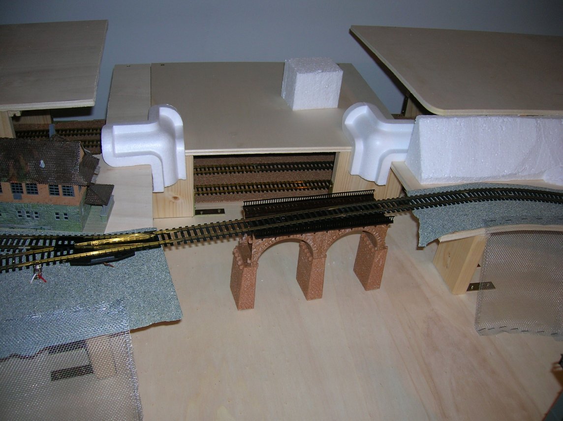 abnehmbar werden. So lässt sich der Schattenbahnhof bequem warten und reinigen. Links wird das Neubaugebiet entstehen, rechts kommt
