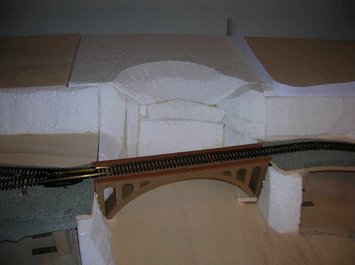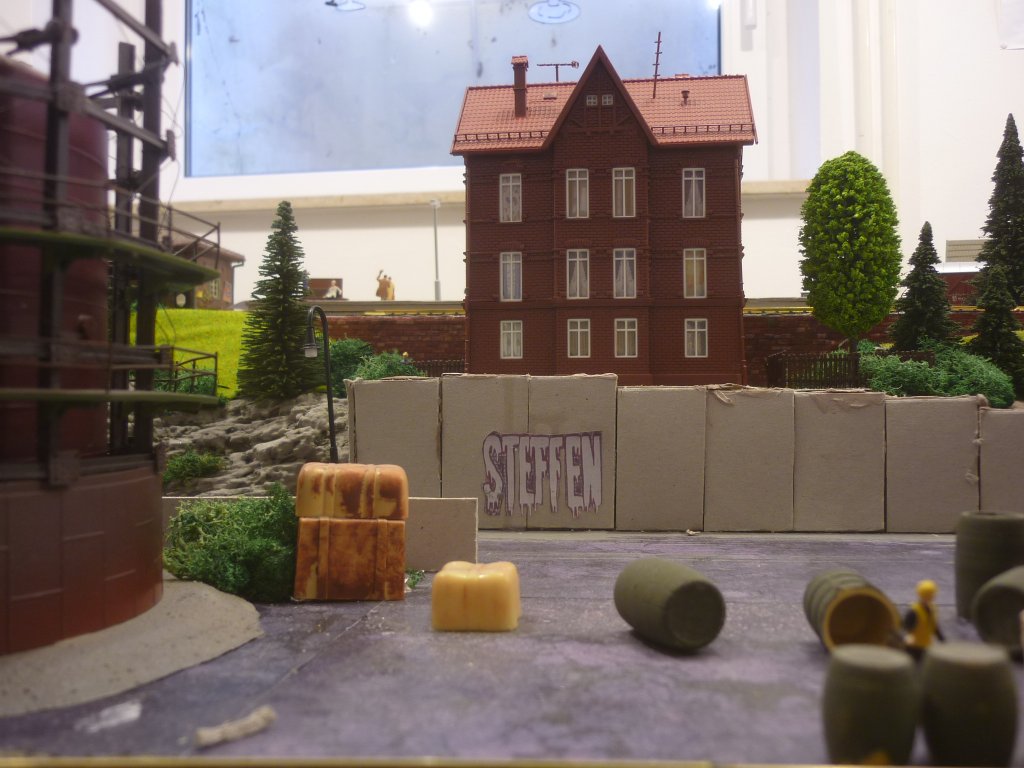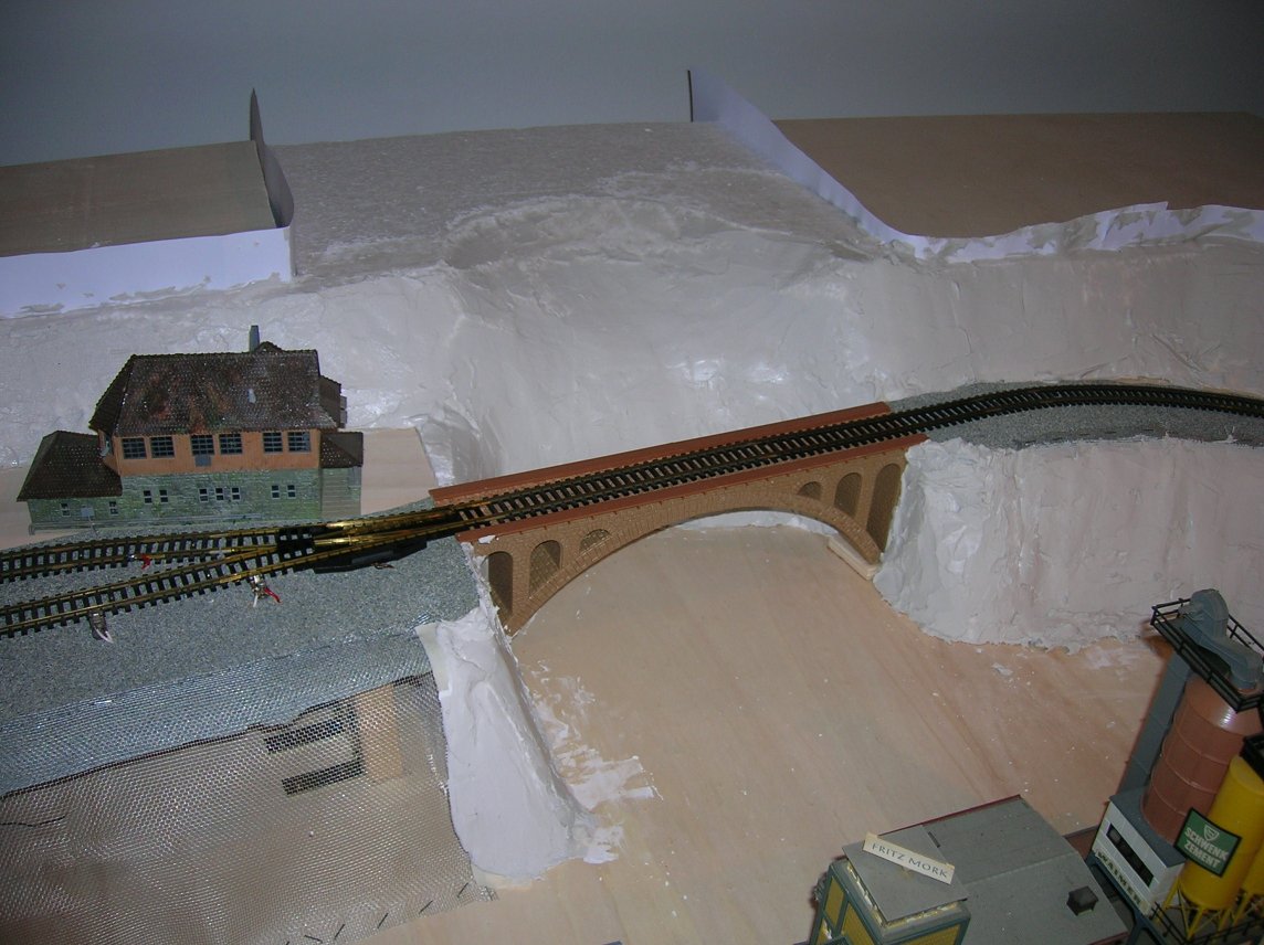 die Fachwerkaltstadt hin. Dazwischen wird eine Schlucht modelliert. Dieser 30cm breite Teil ist der einzige festmontierte Teil. Unter