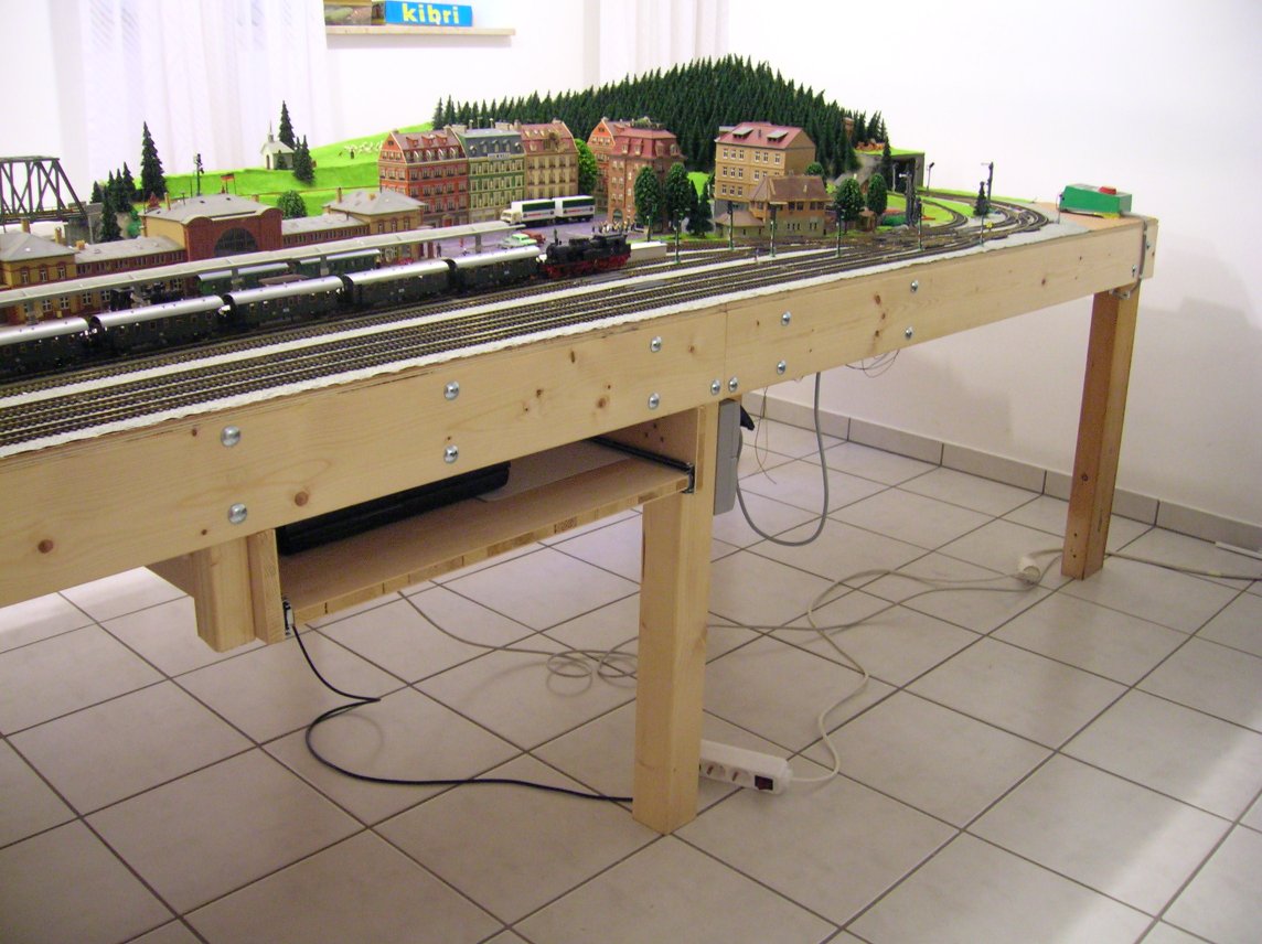 Die Wartbarkeit soll auch nicht außer Acht gelassen werden. Die hinteren Geländeteile über dem Schattenbahnhof sollen abnehmbar sein. So kann man gut an die Gleise und diese bequem säubern. Hier habe ich aus einer entscheidenden Schwäche der alten Anlage gelernt. Die äußere Strecke hatte eine Sonderrunde eine Etage tiefer. Das lag so schlecht, dass die Gleise noch nicht einmal befestigt waren. Da immer etwas unter der Anlage stand, war die Reinigung praktisch nicht mehr möglich.