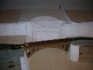 Bis zum Haltepunkt wird die Holzkonstruktion fest verbaut. Ab da kristallisiert sich schon ein Problem heraus: Die 10 (!) Brückenbausätze